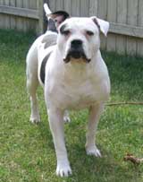 Alapahas will measure up to 24 inches, on average, and should weigh as little as 50 pounds and as much as 95 pounds. Females are noticeably smaller, normally only weighing up to 75 pounds. Square, powerfully built, yet agile and athletic for size and alert. Acceptable coat colors are black, white, "blue" spotting, brown, and spotted (in some cases, Alapaha will have a distinctive "blue patch" over their eyes). Are considered fault: 50% or more brindle, any solid coloring, total black "masking" of the face.